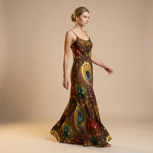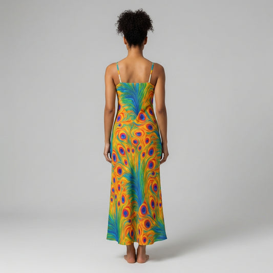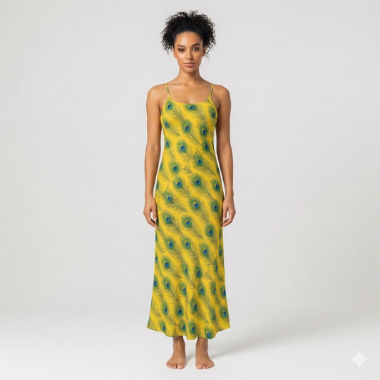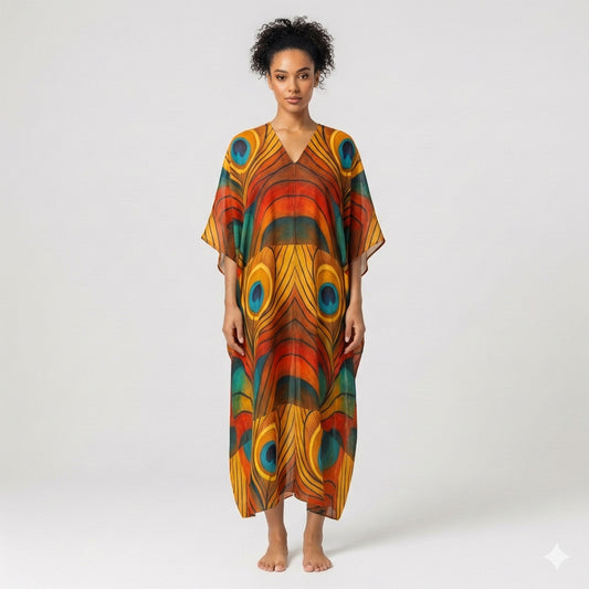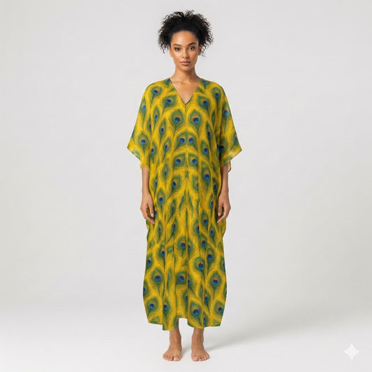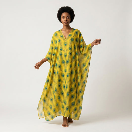 Caftan Yellow Peacock Feather in Lightweight Organic Cotton Voile