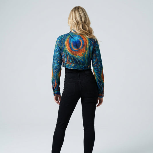 Cropped Jean Cotton Jacket Orange Peacock Feather