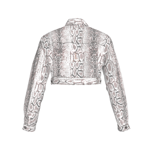 L'EGNA RISING SNAKESKIN Cropped Jean Jacket