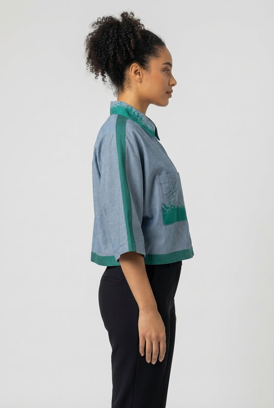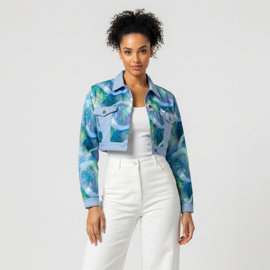 Cropped Jean Jacket in Heavyweight Stretch Cotton Denim
