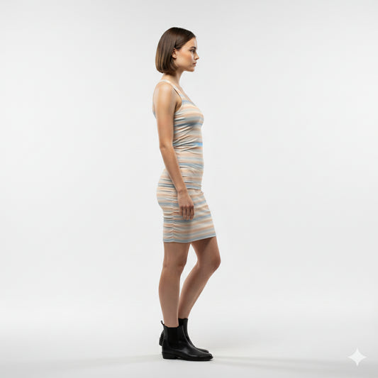 Racerback Tank Mini Dress in Cotton Jersey – Pastel Stripe