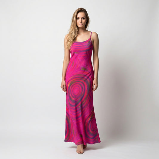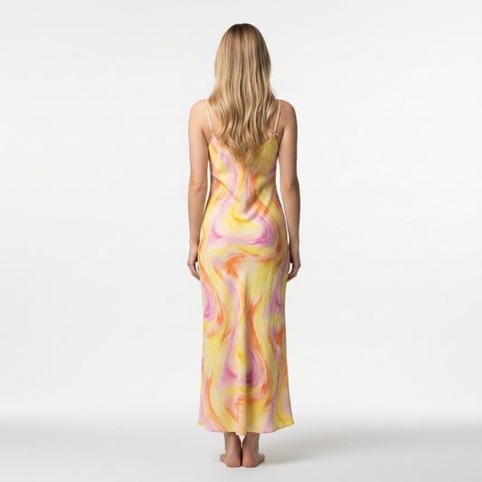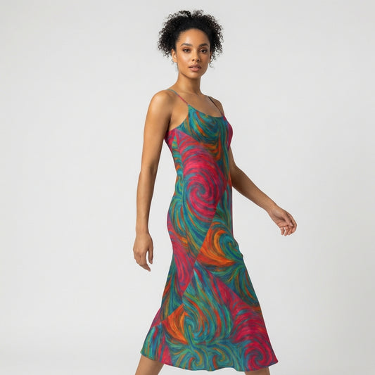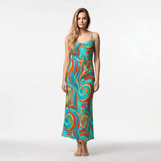 Bias Slip Dress Rainbow Swirls