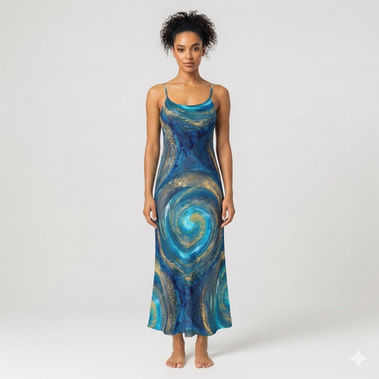 Bias Slip Dress Cyan Swirls