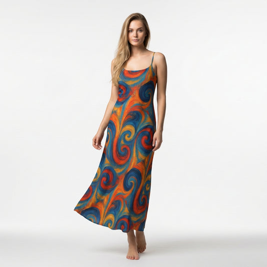 Bias Slip Dress Orange Swirls