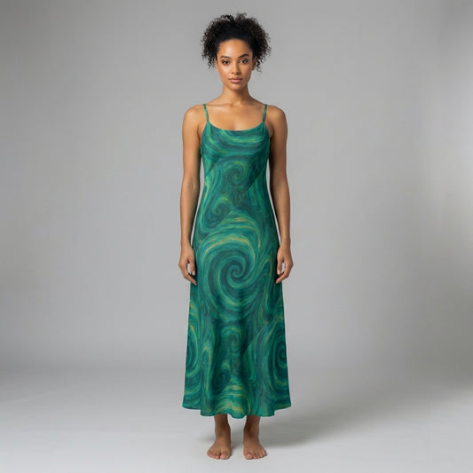 Bias Slip Dress Green Tornado