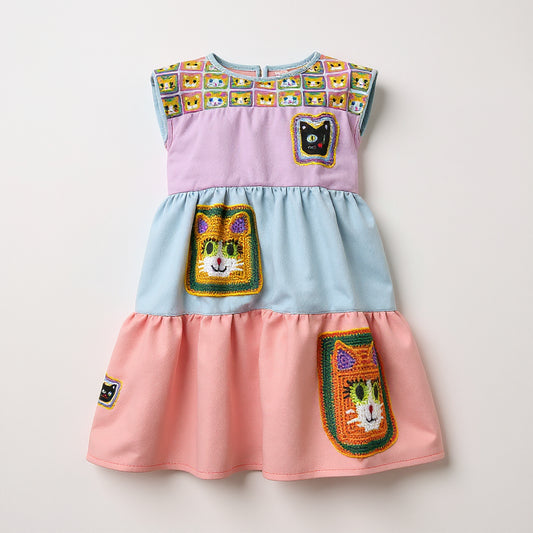 Kid's Ruffle Dress with Lining in Flower Bloom Pink & Light Green