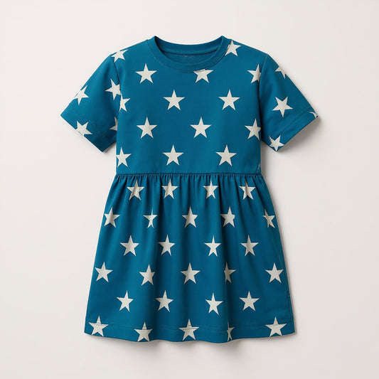 Kid's Ruffle Dress Without Lining in Belle Bloom in Light Blue in Light Cotton Slub