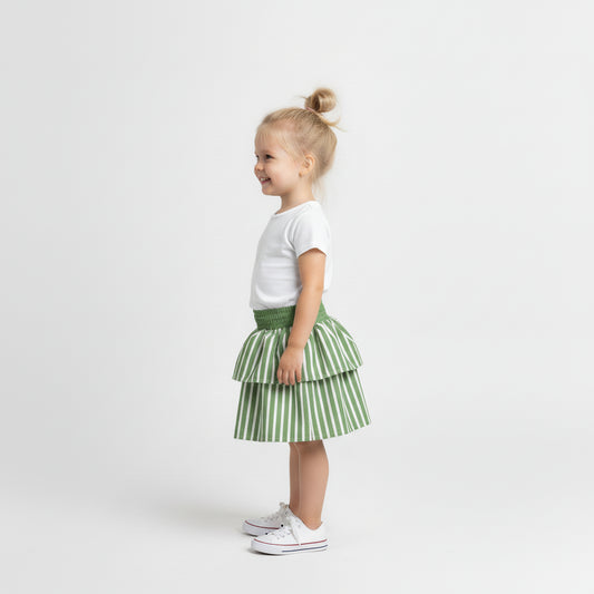 Smocked Ruffle Skirt in Pima Cotton Poplin