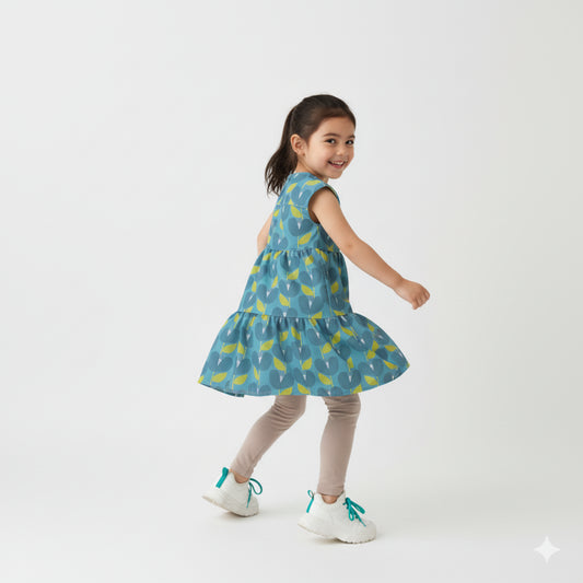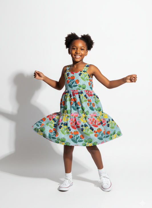 Little Lizzie | Teal Poppies Ruffle Dress with Lining