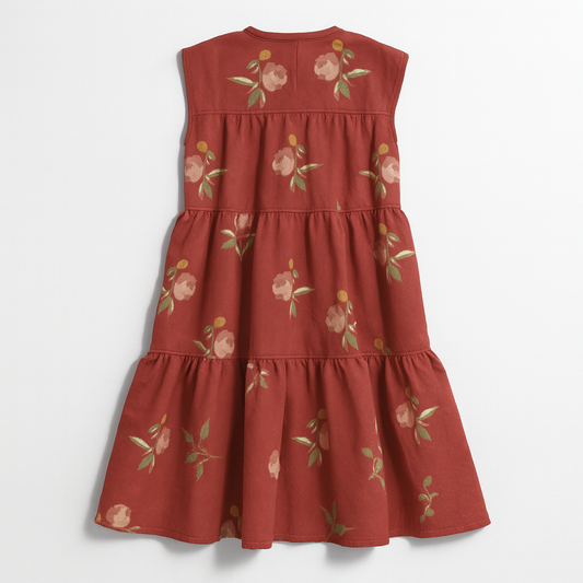 Kid's Ruffle Dress Without Linning in Belle Bloom Red in Light Cotton Slub