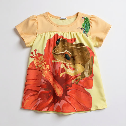 Kid's Ruffle Dress in Sketching Summer Yellow