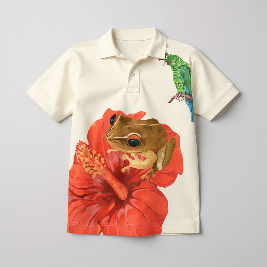 Kid's Ruffle Dress Without Lining in Ecru Dutch Blossoms