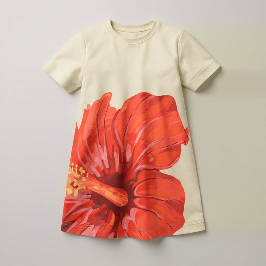 Kid's Ruffle Dress Without Lining in Evergreen Painted Poppies