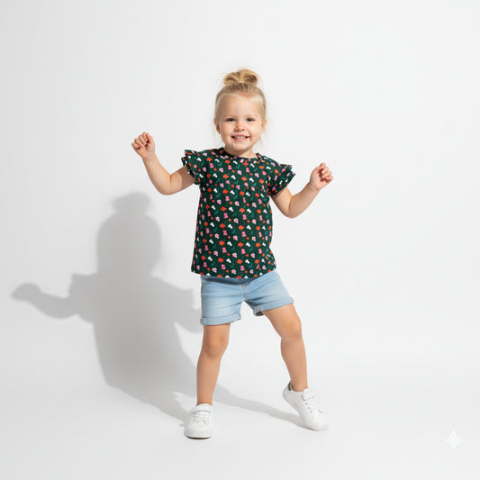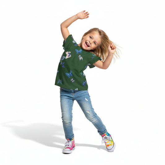 Kid's Ruffled Sleeve Top in Emerald Fluttering Butterflies