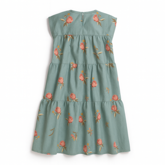 Kid's Ruffle Dress Without Lining in Sage Primrose