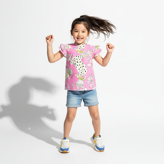 Kid's Ruffled Sleeve Top in Sketching Summer Pink