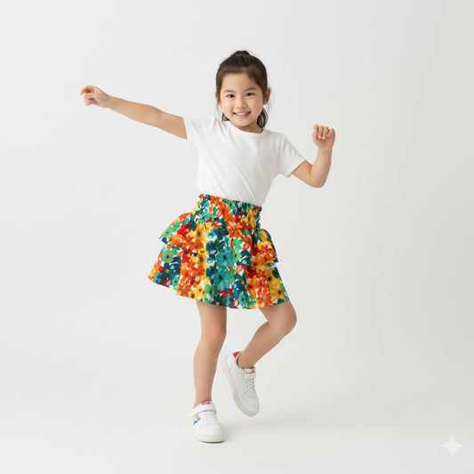 Kid's Smocked Ruffle Skirt in Fleur de Esti
