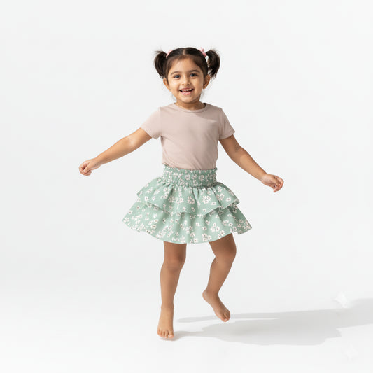 Kid's Smocked Ruffle Skirt in Sage Primrose