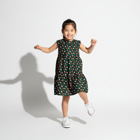 Kid's Ruffle Dress Without Lining in Evergreen Painted Poppies